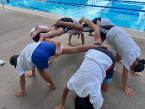 どれが自分の足か分からない頭と体を使った体操からスタート。